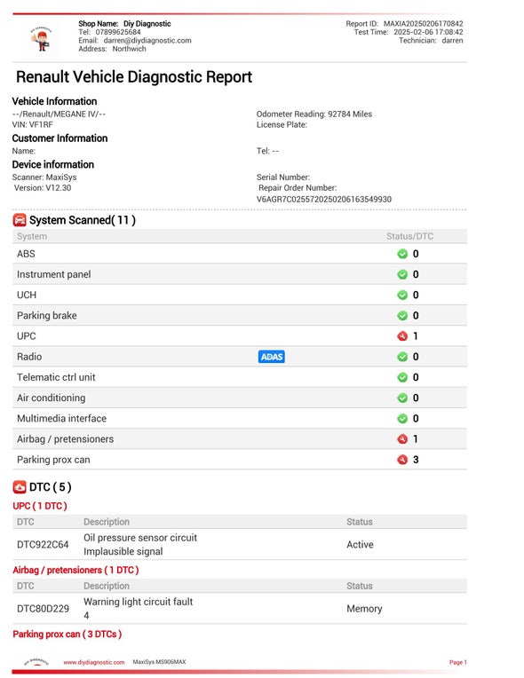 - If you're noticing symptoms but aren't sure whether they are serious (or if they’re just a normal part of driving), a diagnostic report can provide clarity and help you make an informed decision about whether to seek repairs or just monitor the situation.